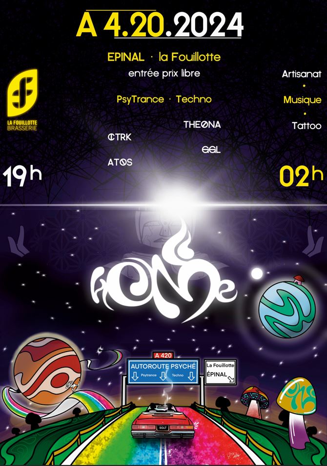 Notre collectif Home ॐ vous invite à galoper sur cette route psychédélique qui vous fera voyager d'une techno envoutante à une psytrance festoyante. Vous aurez le loisir de pouvoir vous recharger en carburant à la station-bar avec les excellentes bières locales artisanales !