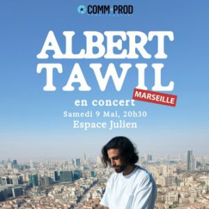 COMMNPROD INTERNATIONAL en accord avec SUD CONCERTS présente : ALBERT TAWILEn concertNé à Paris de parents libanais et profondément attaché à ses racines orientales, Albert Tawil baigne dès l’enfance dans la musique grâce à une mère cantatrice d’opéra reconnue.Il développe très jeune une oreille sensible et un goût prononcé pour la création.Multi instrumentiste et autodidacte, il se distingue comme auteur, compositeur, interprète et producteur indépendant. Ses concerts parisiens affichent complet. Révélé sur les réseaux par ses remixes et sa fusion audacieuse du français et de l’arabe, il incarne une nouvelle génération d’artistes hybrides et libres.