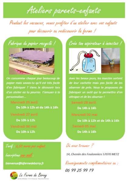 Pendant les vacances, venez profiter d’un atelier avec vos enfants pour découvrir ou redécouvrir la ferme !