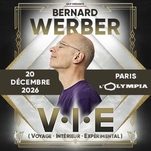 TEXTE PRÉSENTATION – BERNARD WERBER« V.I.E » - 2026 Le spectacle V.I.E pour VOYAGE INTERIEUR EXPERIMENTAL, est une expérience d’un nouveau genre. Dans ce mélange de rêvé éveillé, de méditation guidée, d’humour et de musique relaxante, l’écrivain Bernard Werber vous invite à pratiquer du « TOURISME SPIRITUEL ».