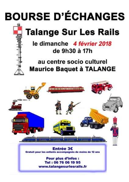 Bourse d’échanges de figurines, miniatures, modèles réduits, de train, voiture... organisée par Talange sur les rails le dimanche 4 février 2018 de 9h30 à 17h à la salle Maurice Baquet.