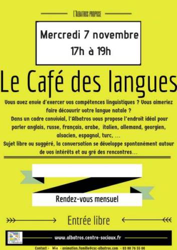 Avec près de 20 langues natales parlées par les adhérent.e.s du CSC, dont notamment les apprenant.e.s des cours de Français Langues Etrangères (FLE),le CSC L’Albatros souhaite valoriser cette richesse culturelle en proposant un “Café linguistique ».
