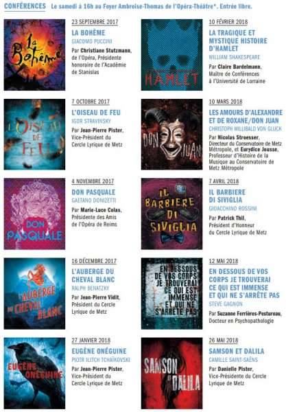 LES CONFÉRENCES PROPOSÉES PAR LE CERCLE LYRIQUE DE METZ SE DÉCOUPENT COMME SUIT :