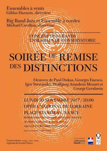 Au programme, les élèves des ensembles à vents (sous la direction de Gildas Harnois) et ceux du big band jazz et de l’ensemble à cordes (sous la direction de Michael Cuvillon) interprèteront des oeuvres de Paul Dukas, Georges Enesco, Igor Stravinsky, Wolfgang Amadeus Mozart et George Gershwin.