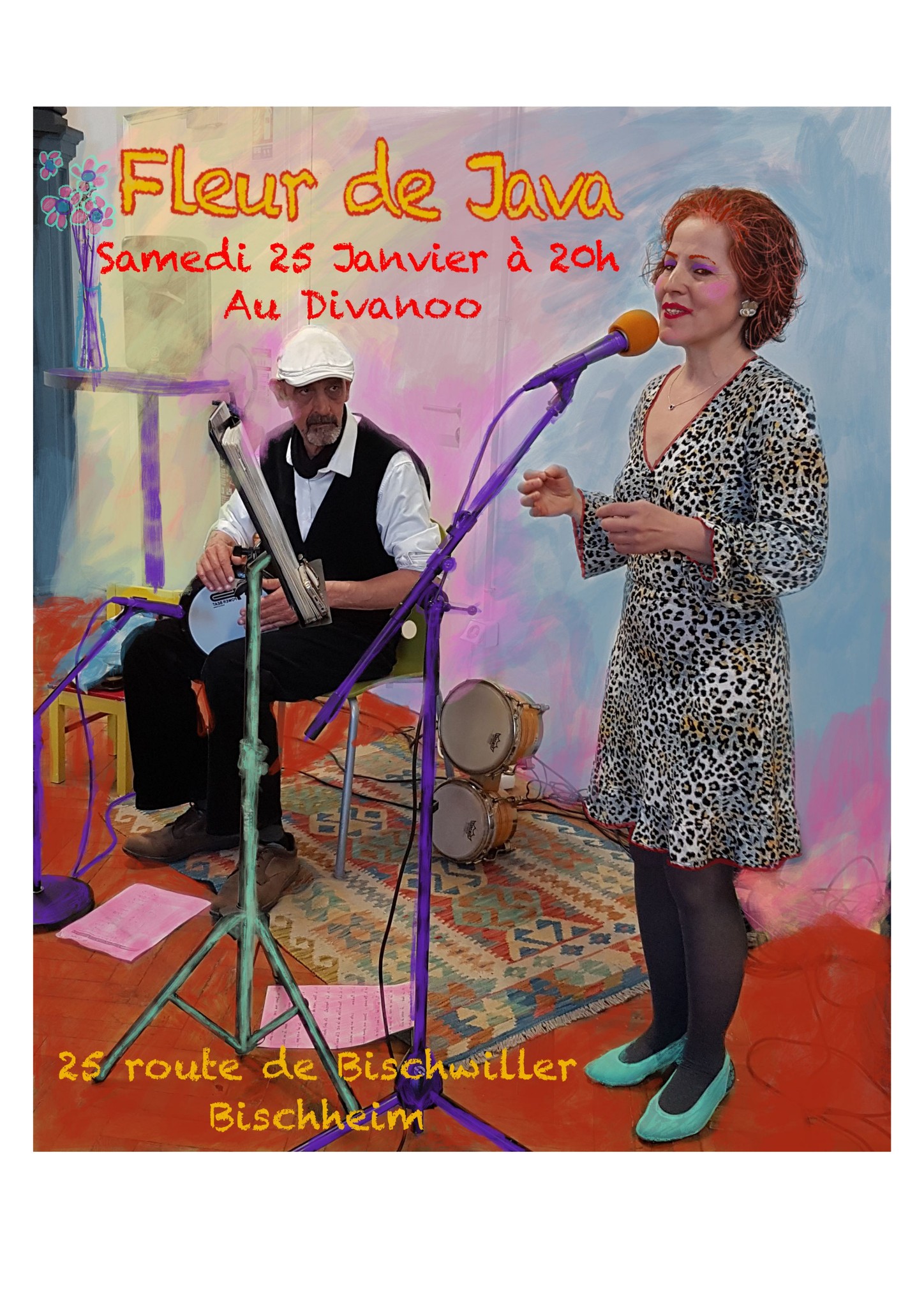 Le duo Fleur de Java vous propose un voyage exotique où le passé et le présent se rencontrent. Un répertoire de vielles chansons revisitées au goût du jour, et bien épicées, interprétées par Virginie Hornn, accompagnée par Pierre Boutelant aux percussions
