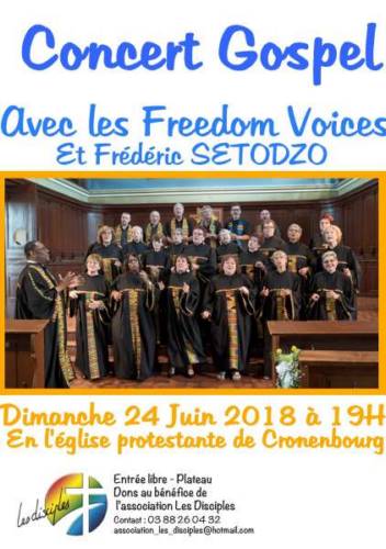 L’Association Les Disciples vous invite à un CONCERT GOSPEL avec les FREEDOM VOICES et FREDERIC SETODZO