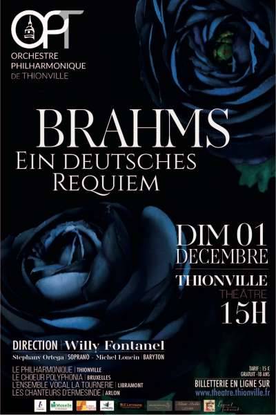 Après le Requiem de Duruflé donné en Juin 2019 à Thionville et à la cathédrale de Metz avec les ch?urs des maitrises de Metz et de Dijon, c’est cette fois sur la scène du Théâtre Municipal que Willy Fontanel et les musiciens du philharmonique ont décidé de partager l’?uvre de Brahms.