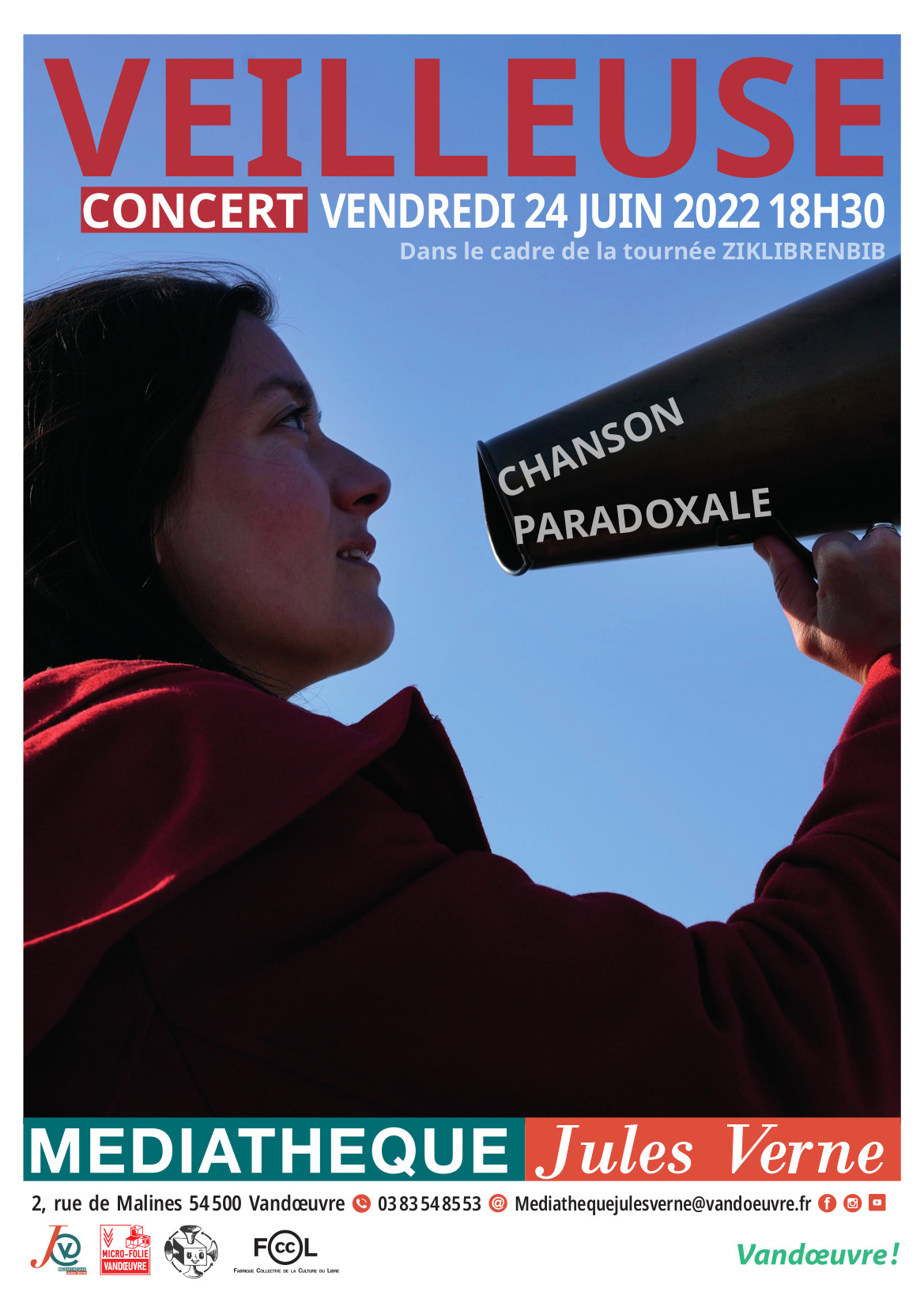Ce concert a lieu dans le cadre d’une tournée organisée par différentes bibliothèques et médiathèques de Lorraine en partenariat avec l’association Ziklibrenbib, qui promeut la musique en libre diffusion dans les médiathèques.