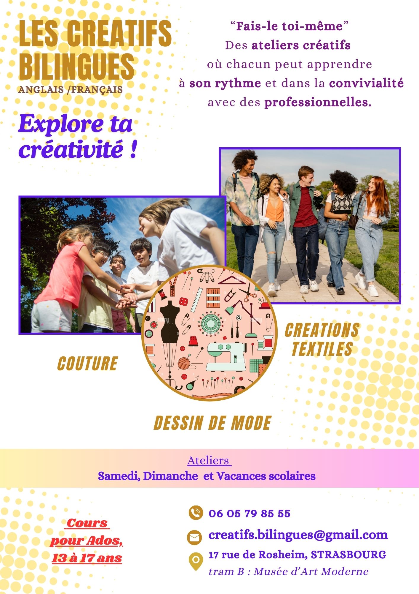 Les Créatifs Bilingues proposent des ateliers créatifs et linguistiques (anglais/français) pour enfants et adultes, dans une ambiance conviviale et stimulante.