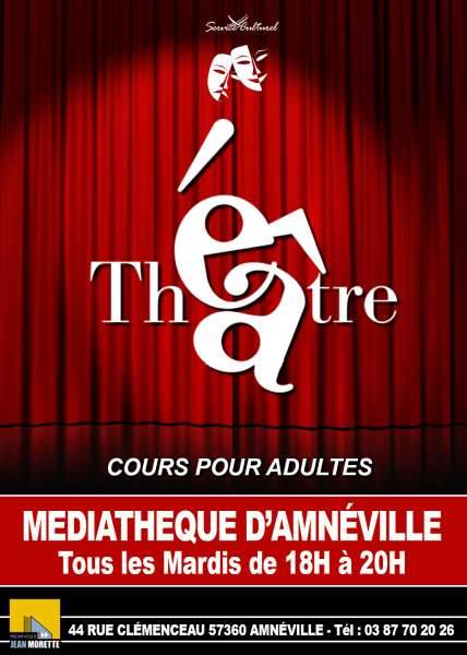 Cours de théâtre pour adultes (+ de 60 ans) animés par Rodica Meyer les mardis soir de 18h à 20h à l’auditorium de la médiathèque.