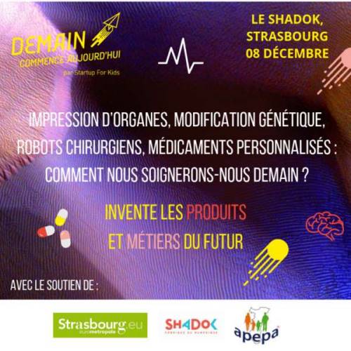Tu as envie d’en savoir plus sur le futur de la santé, et de nous donner ton point de vue - Tu es curieux d’en apprendre plus sur les impression d’organes la modification génétique, les robots chirurgiens où les médicaments personnalisés -