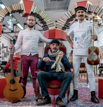 Dans les compositions du groupe, les traditions de l’Iran se croisent et s’entrelacent avec les musiques folks américaines et européennes, les rythmes du Moyen-Orient se tissent avec ceux des Caraïbes et des Balkans. Les trois musiciens ont à cœur de promouvoir la poésie et la littérature persanes et françaises (SAADI, RUMI, BAUDELAIRE et BRASSENS).