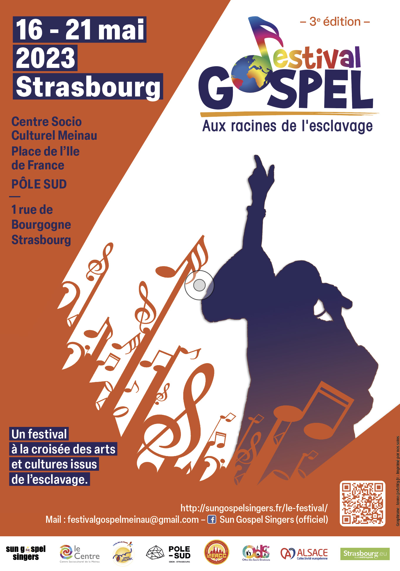 Nous avons hâte de vous faire découvrir le Festival Gospel de Strasbourg « Aux racines de l’esclavage » à la Meinau du 16 au 21 mai 2023 et de vous enchanter pour faire avancer la bienveillance et l’ouverture à l’Autre. Ouvert à tous-tes.