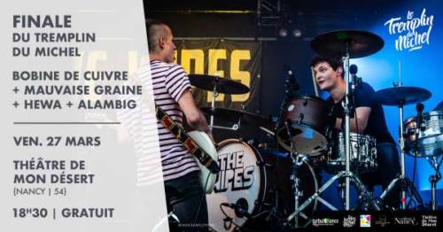RDV le 27 mars au Théâtre de Mon Désert à Nancy pour soutenir les 4 finalistes : Bobine de Cuivre, Mauvaise Graine, Hewa et Alambig !