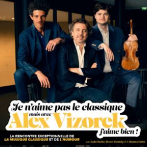 « Je n’aime pas le Classique, mais avec Alex Vizorek j’aime bien ! » Déjà 15 ans, que le disque « Je n’aime pas le Classique, mais ça j’aime bien » s’est imposé comme compilation phare du répertoire classique.Avec une toute première adaptation sur scène orchestrée par Gaspard Proust et ovationnée par la presse et le public, c’est désormais Alex Vizorek, humoriste, comédien et animateur belge, qui s’érige en maître de cérémonie.Après l'immense succès de son premier spectacle consacré à l'art dans « Alex Vizorek est une œuvre d’art », c’est désormais à la musique classique qu’il s’attaque.Accompagné pour l’occasion de musiciens classiques de renom, tels que Luka Faulisi ou Simon Ghraichy, il décortiquera avec humour et bienveillance les plus grandes œuvres classiques, entre pédagogie et vérités historiques.Grâce à lui, grâce à eux, nul doute que même si vous n’aimez pas le classique, ça, vous aimerez !Un moment suspendu et unique pour le public qui assistera à un magnifique concert et plus encore… a` la rencontre exceptionnelle de la musique classique et de l’humour. Avec : Luka Faulisi - violon solisteSimon Ghraichy - pianoJulius Bernad - violonAngèle Pungier - altoAlec Fukuda - violoncelle Blanche Stromboni - contrebasse
