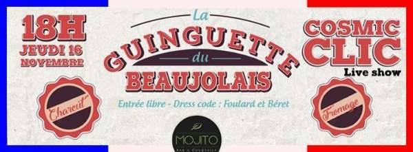 A l’occasion du lancement du Beaujolais nouveau, nous vous invitons le 16 Novembre à découvrir le Mojito Bar en mode guinguette, autour de fromages, de charcuteries avec une ambiance festive et conviviale !