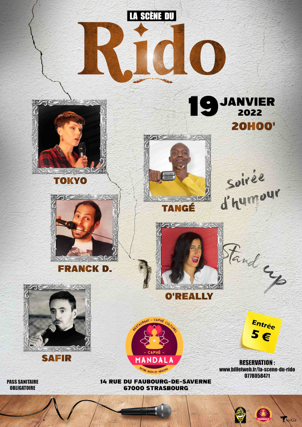 La scène du Rido vous ouvre ses portes ce 19 janvier 2022 à 20 H 00' pour une folle soirée d'humour (stand up) au Mandala.