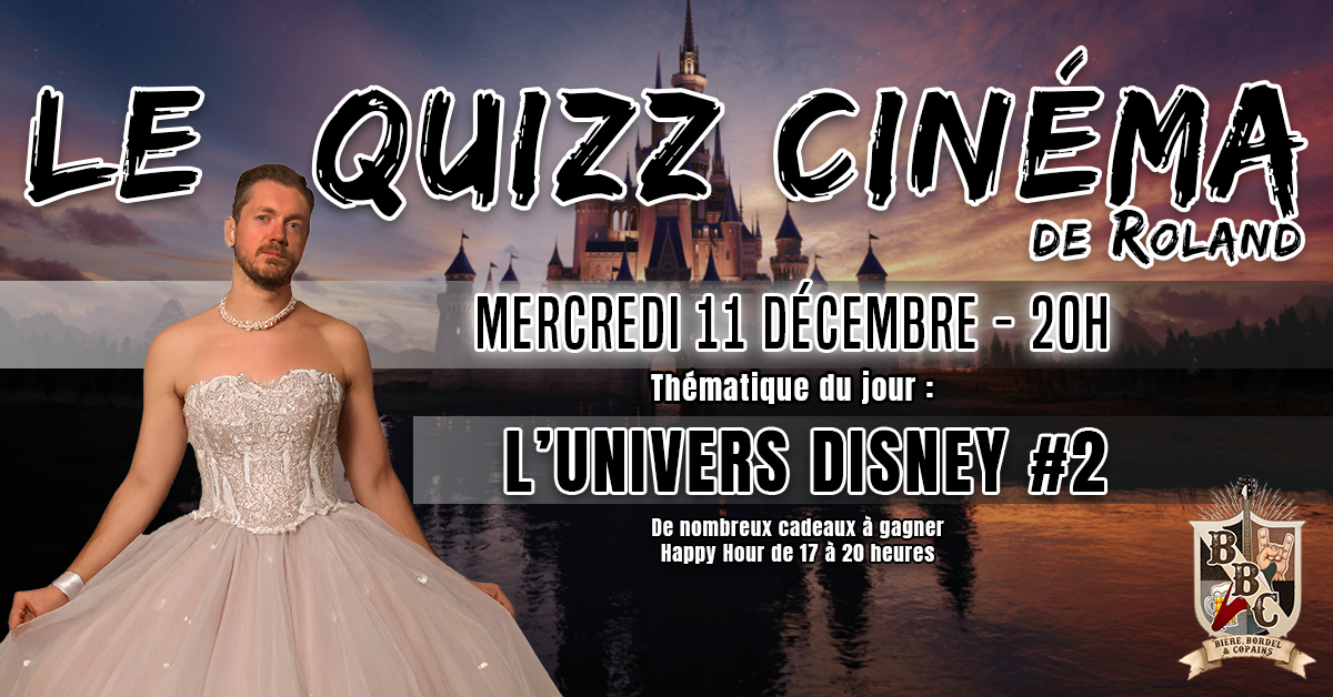 ✨? Le mercredi 11 décembre à 20 heures, le BBC vous emmène une nouvelle fois dans un monde merveilleux avec une soirée ciné-quiz spéciale L'univers Disney #2 ! Préparez-vous à replonger dans la magie des contes de fées, des aventures épiques et des chansons inoubliables qui ont bercé notre enfance (et notre âge adulte aussi, on ne va pas mentir).