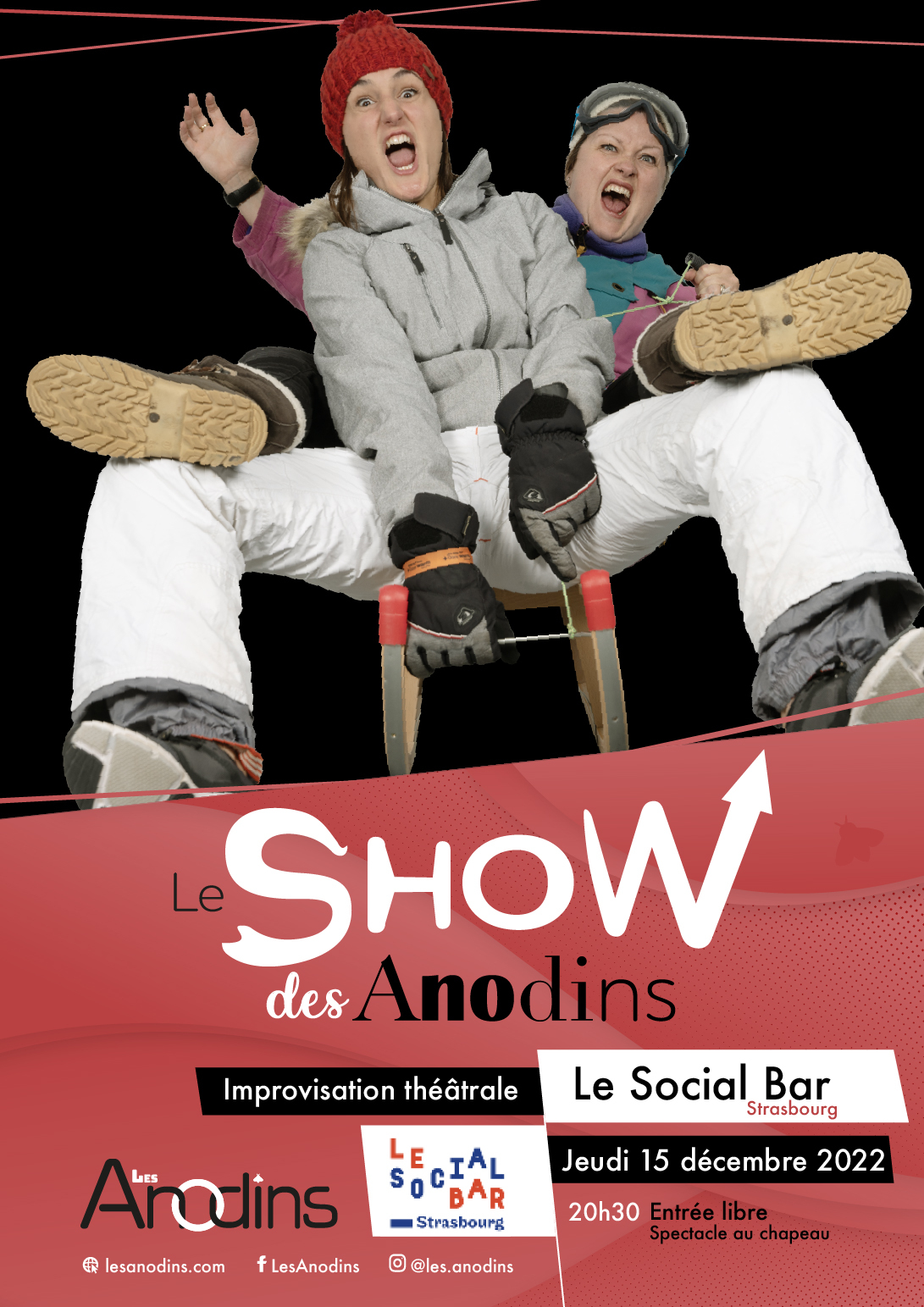 Et ils déboulent au Social Bar pour un spectacle ébouriffant où soufflera le vent d’hiver, fumera le vin épicé, djingleront les cloches des villes, et slammeront les anges dans nos campagnes, sous les yeux coruscants des spectateurs enjaillés. Attention, show d’avent !