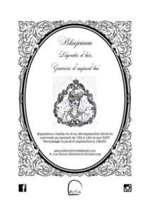 Férue d’histoire, de contes et légendes ainsi que de gravures anciennes, il est temps pour BlueJeanne de rattacher, à ce stade de son parcours, un wagon de son histoire. Bienvenue en Alsace, terre de légendes où se côtoient les récits les plus noirs et les mythes les plus féeriques. Bienvenue dans l’antre qu’est l’Ecrin pour tout le mois de septembre, dans lequel on découvre intimement un folklore où viennent se mêler les civilisations latines et germaniques. C’est la rentrée, chacun reprend le chemin de ses obligations, laissant derrière lui la chaleur des longues journées d’été. L’ambiance lourde de nostalgie pousse le rêveur qui sommeille en chacun de nous à se réfugier dans ses pensées, à voyager par la force du souvenir, et à vagabonder de légendes en histoires, et de contes en mythes. L’Ecrin se présente alors comme le havre de l’imaginaire, offrant une trêve dans le quotidien, une parenthèse enchantée pleine de poésie et de subtilités. Septembre, retour en Alsace, il est plus que jamais l’heure d’ouvrir les yeux sur la beauté du patrimoine que notre contrée nous offre. Les légendes s’enracinent dans leterreau régional et familial, créant des instants propices aux confidences... Les livres s’ouvrent, et laissent s’échapper l’inattendu. Dans cette exposition se côtoient alors la magie de l’or et la peur des ombres, le cuir d’une ancienne carte au trésor et les vestiges de la tête d’un cerf, le tout solidement cousu par l’univers raffiné de BlueJeanne. Afin de faire vraiment exister ces histoires, un conteur viendra donner vie au lieu et à ces illustrations, en proposant aux plus jeunes une occasion de s’immerger dans leur culture. Restez à l’écoute...