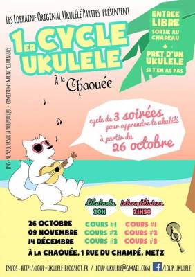 Pendant trois mois consécutifs, et ce, une fois par mois, venez apprendre de manière progressive selon votre niveau (débutant ou intermédiaire). De 20h à 21h30, 1er COURS DEBUTANT, puis de 21h45 à 23h15, place aux INTERMEDIAIRES. Si vous avez manqué un cours, sachez que ces mêmes cours reprendront dès janvier pour à nouveau trois mois consécutifs. Cela permettra à nos débutants de passer au niveau supérieur et pour les plus avancés de pouvoir participer à nos futures soirées "chansons collectives au ukulélé".