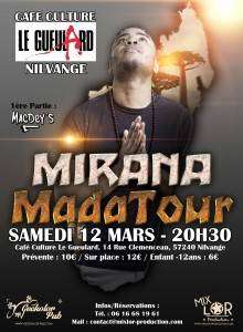 Quelques semaines avant la sortie de son 1er EP, Mirana, le jeune chanteur originaire de Madagascar, sera en concert le samedi 12 mars 2016 à 20h30 au Café Cutlure Le Gueulard.