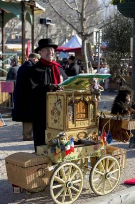 Passionné de musique mécanique et d’orgues de barbarie, Roger Autier invite les passants à fredonner des airs de Noël et autres chants populaires comme autrefois, dans les rues.