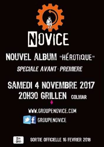 Venez fêter la sortie du nouvel album de Novice Herotique en avant première, ainsi que les 20 ans du groupe au Grillen de Colmar le 4 novembre 2017.