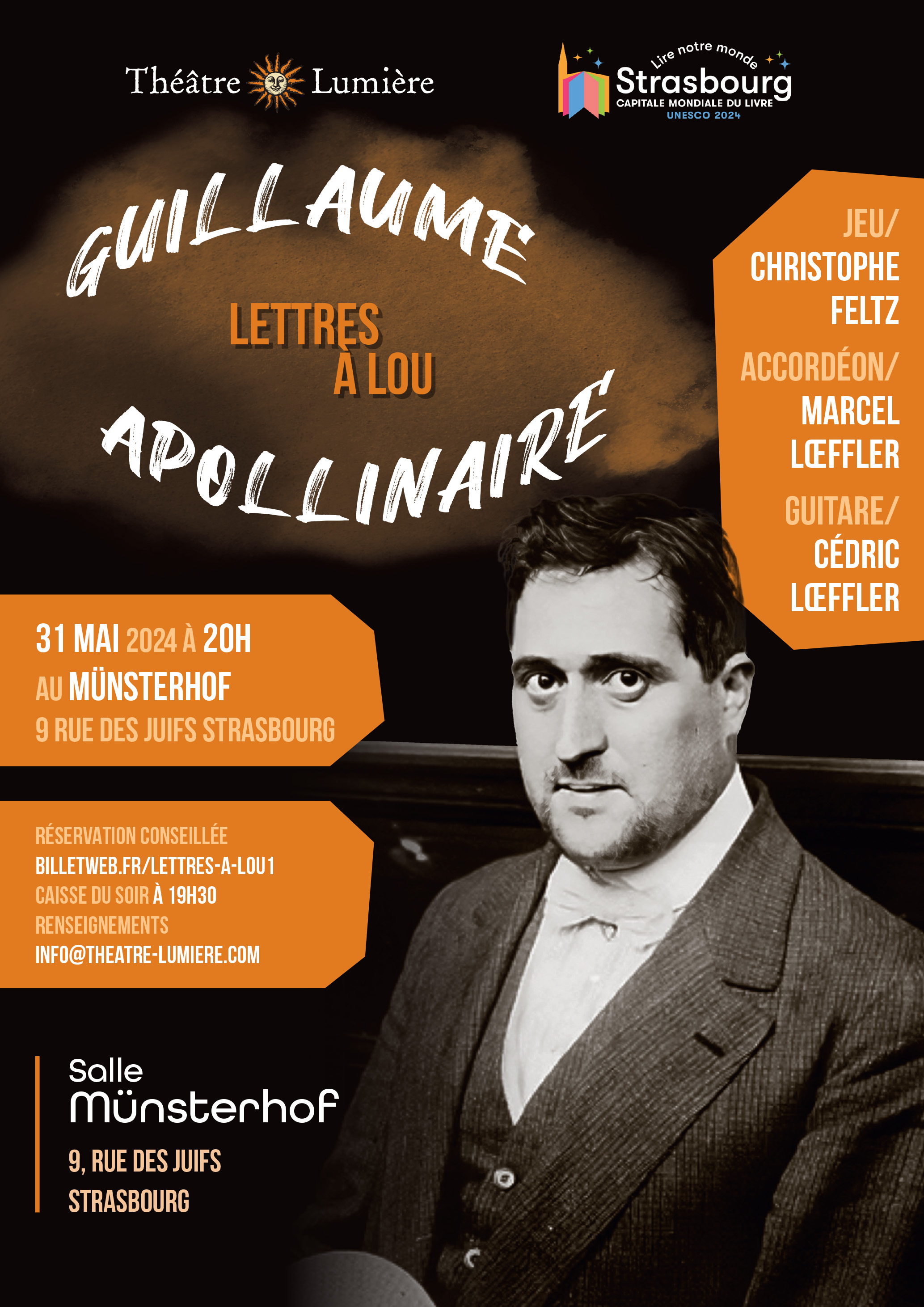 Spectacle de poésie musicale, « Lettres à Lou » de Guillaume Apollinaire, musiques en direct d’Érik Satie, Maurice Ravel et Claude Debussy,