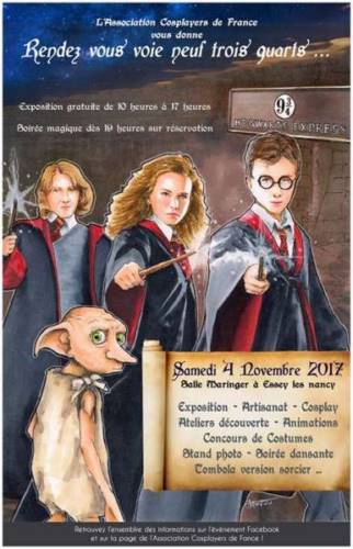 Les Cosplayers de France vous invitent à une exposition magique dès 10h00 à 17h00 à la Salle Maringer d’Essey les Nancy pour vous plonger au coeur de l’univers fantastique d’Harry Potter et de J.K Rowling.
