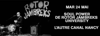 Après Rock’n’Roll Rebel, accueilli en 2013 à L’Autre Canal, Rotor Jambreks revient avec Soul Power, un nouveau concert-conférence. Avec un discours structuré, un rythme soutenu, de l’humour et des reprises de morceaux de l’époque, Rotor Jambreks aborde plusieurs facettes de la soul. Il remonte aux sources de ce genre musical en étudiant le contexte dans lequel il est apparu et démontre, tout en faisant participer le public, que l’héritage de la soul music est encore bien présent !