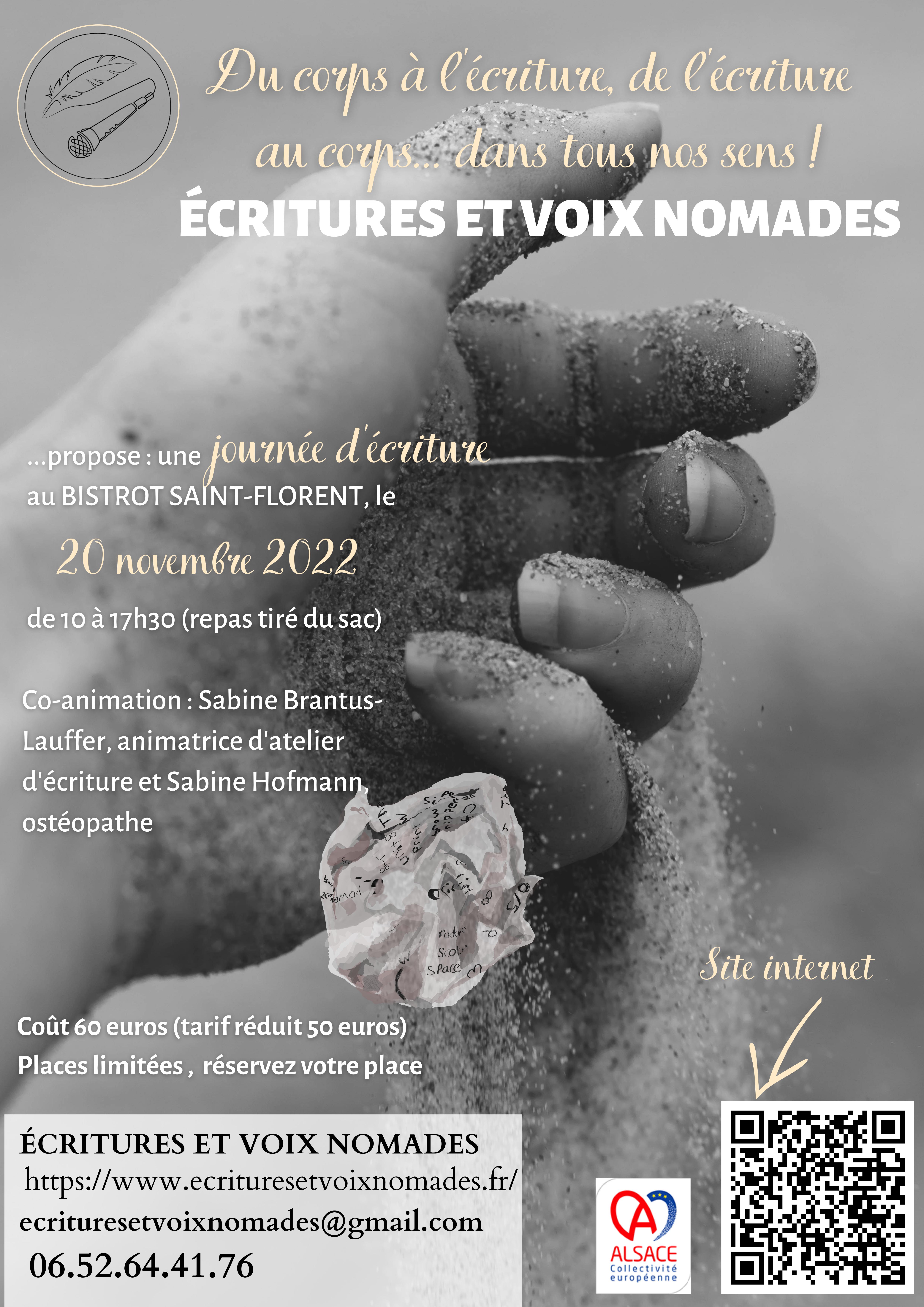 Ecritures et Voix Nomades vous propose de vivre une journée d'écriture en co-animation avec une animatrice d'atelier et une ostéopathe.