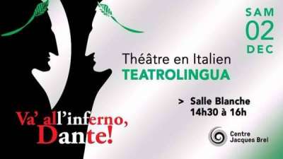 Teatrolingua : une troupe qui joue, en italien les grands textes de la littérature. Composée de comédiens amateurs venus de 17 pays différents, ils nous présentent trois chants de l’enfer de Dante, revus par Luisella Piccoli, la metteur en scène italienne qui a ’actualisé’ ce chef d’oeuvre universel.