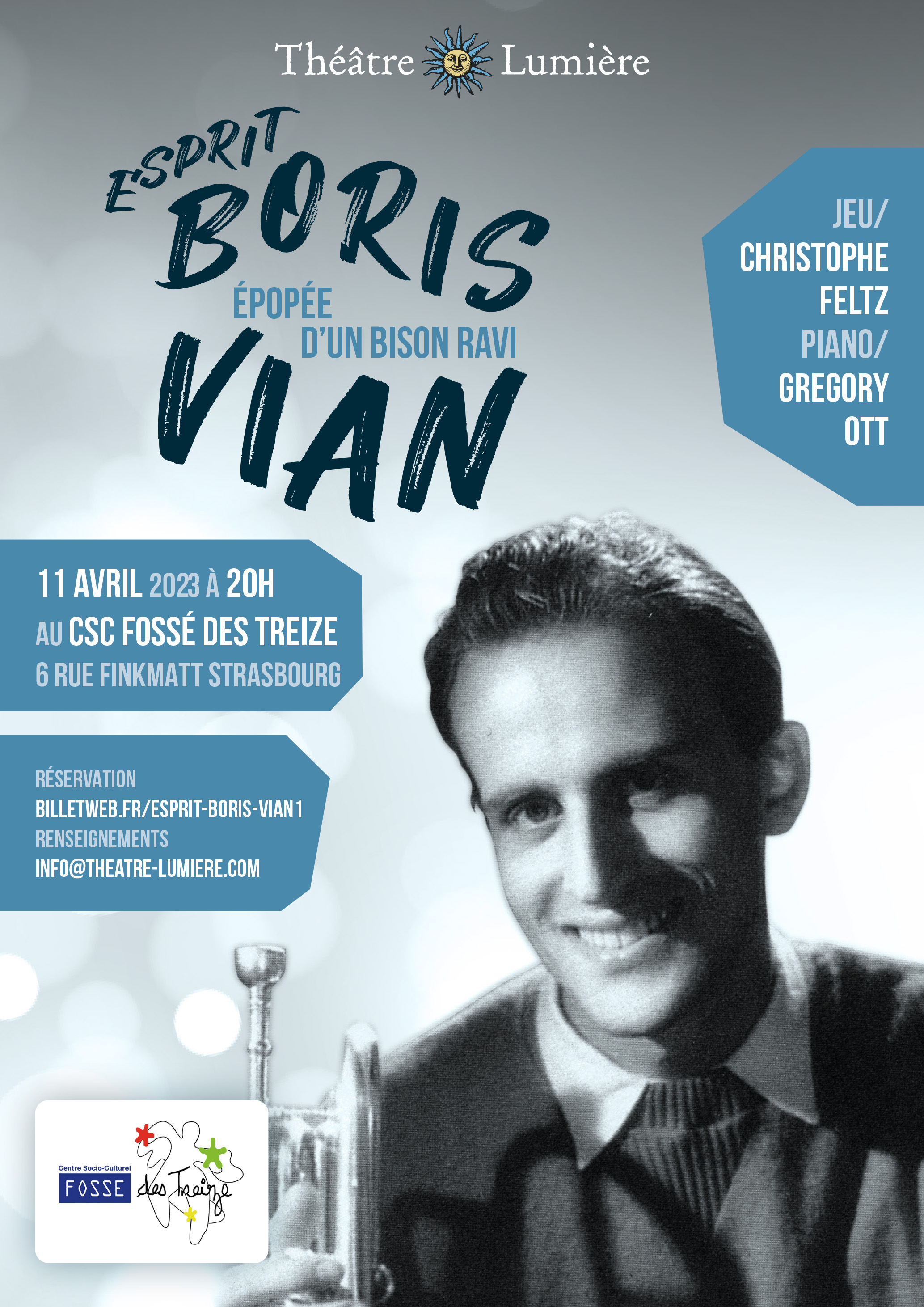 Depuis près de 20 ans, la Compagnie Théâtre Lumière fouille et interroge l’œuvre extraordinaire de l’un des très grands esprits artistiques et poétiques du XXe siècle, Boris Vian. Notre « Bison ravi », comme il aimait à se faire appeler (anagramme de Boris Vian) est un artiste original et unique (auteur, poète, traducteur, chanteur, musicien…) qui a entre autre fait découvrir en France ses amis « rois du jazz » Duke Ellington, Charlie Parker, Miles Davis pour ne citer que les plus célèbres.