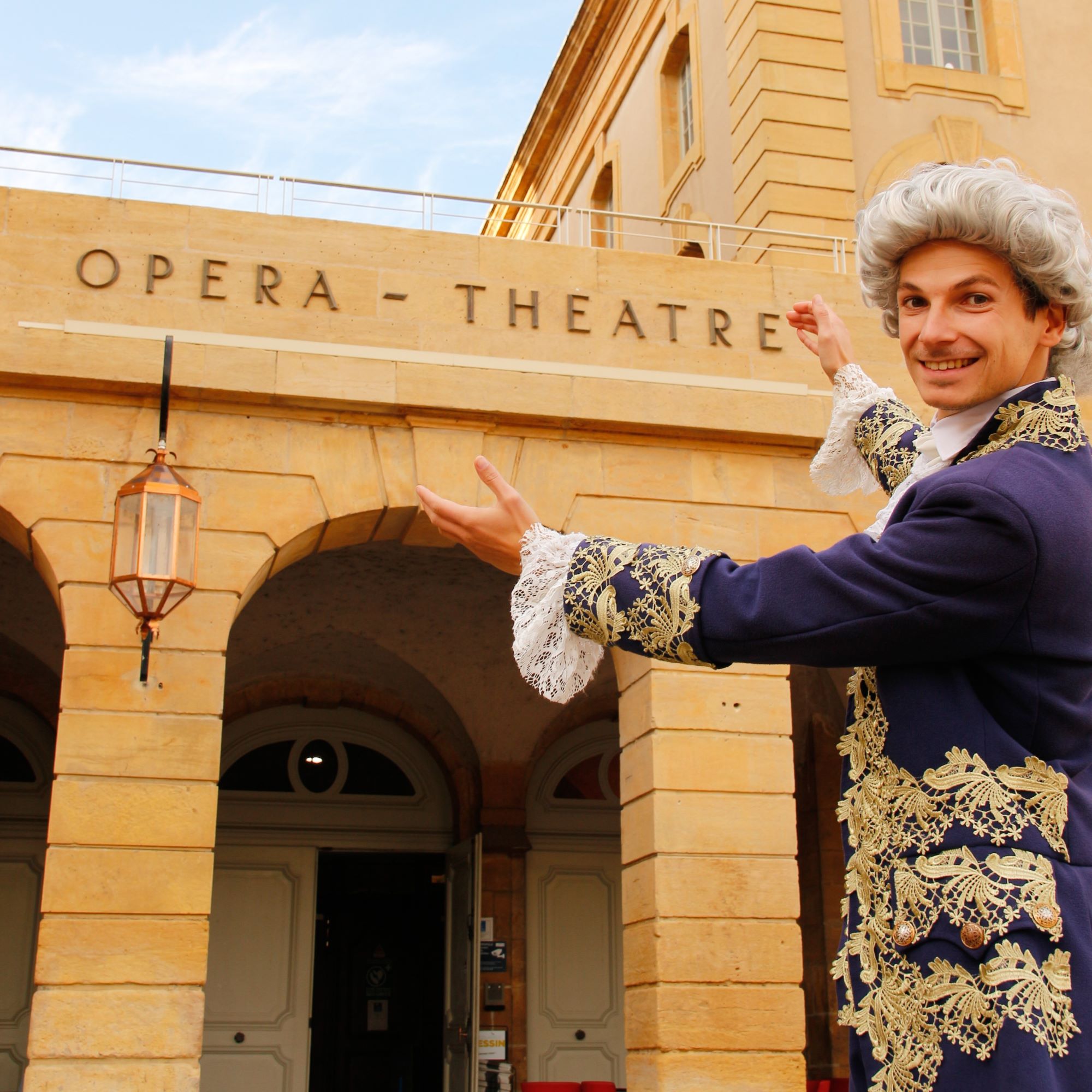 Votre guide, costumé en Représentant de Louis XV à Metz, vous emporte avec lui dans une visite haute en couleur : il vous livrera des secrets sur les bâtiments incontournables du centre historique, ainsi que des anecdotes croustillantes sur la venue du Roi, en compagnie de sa charmante maîtresse...
