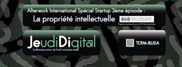Le World Trade Center Metz-Saarbrücken, en partenariat avec Metz Métropole Développement, vous invite à l’Afterwork International Spécial Startup 3ème épisode ’La propriété intellectuelle’ le 14 septembre 2017 à TCRM-BLIDA à Metz, dans le cadre des Jeudi Digital (JEDI).