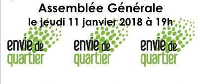 Le collectif Envie de Quartier a le plaisir de vous inviter à son Assemblée Générale le jeudi 11 janvier 2018 à 19h au faubourg 12, 12 rue du Faubourg de Pierre, au fond de la cour.