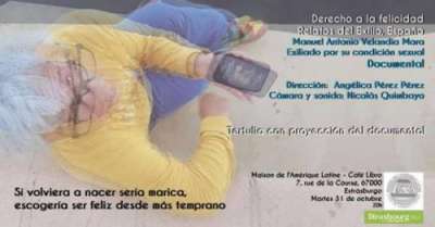 Proyección del documental El derecho a la felicidad - Memorias de exilio en presencia del protagonista, Manuel Antonio Velandia Mora.