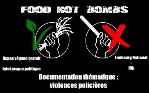 Une fois par mois depuis un an et demi, nous récupérons de la nourriture toujours comestible qui devrait être jetée (date limite de consommation dépassée de quelques jours, fruits et légumes trop moches pour être vendus), nous la cuisinons et nous la distribuons gratuitement ! Toute la nourriture est végane car nous refusons l’exploitation des animaux, et aussi pour montrer que la nourriture végétalienne peut être bonne et équilibrée ! :)