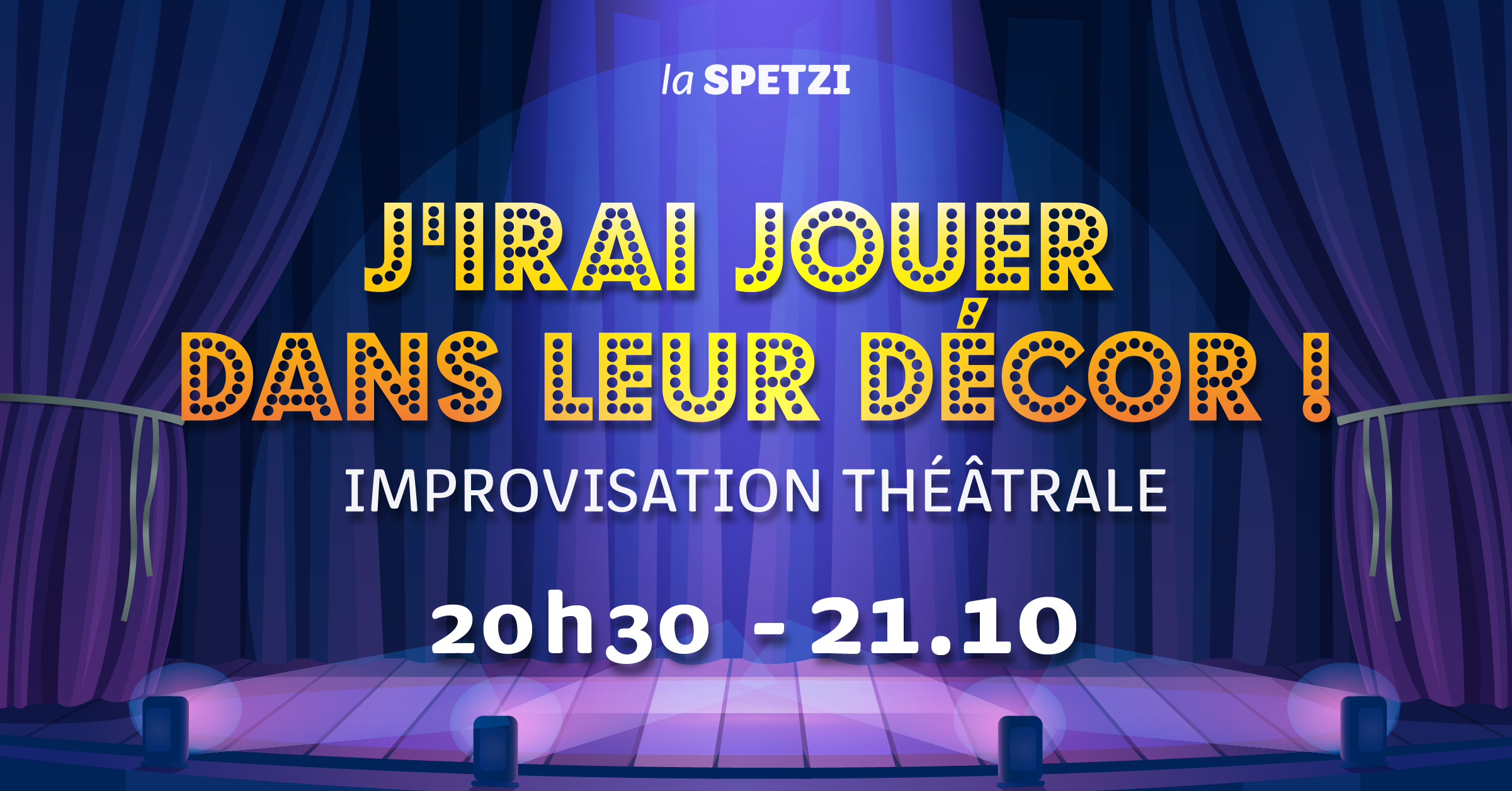 Les comédiens et comédiennes d'improvisation de La Spetzi se lanceront dans une aventure théâtrale unique pour le spectacle "J'irai jouer dans leur décor". Ils découvriront le soir-même le décor de la pièce "Tristesse animal noir", prêté le jour de relâche par la compagnie Liberi Este, et s'en inspireront pour improviser une pièce d'environ une heure. Mais ce qui rend le spectacle vraiment spécial, c'est que c'est le public qui aura le pouvoir de façonner l'histoire. Vous pourrez décider de l'interprétation du décor, des relations entre les personnages, de leur métier, de leurs caractéristiques... Tout sera entre vos mains !