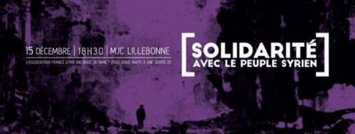 L’association France Syrie Entraide de Nancy (FSE) vous invite à une soirée de solidarité avec le peuple syrien, MJC Lillebonne, le 15 décembre 2017, à 18H30.