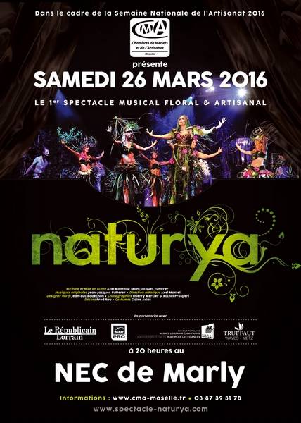 CMA 57 présente en mars prochain l’unique représentation régionale de Naturya : le premier spectacle musical, floral et artisanal de la région. L’objectif est de sensibiliser le grand public mais aussi les artisans sur la question du développement durable. L’initiative s’inscrit dans le cadre de la Semaine Nationale de l’Artisanat 2016. Pendant près de deux heures, les 25 artistes présents sur scène vont parcourir 19 tableaux différents et plus étonnants les uns que les autres avec pour thème central les valeurs du développement durable.