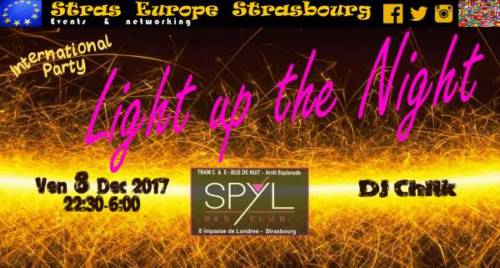 Amis internationaux, Erasmus et Strasbourgeois, Stras Europe vous invite à sa soirée Light Up The Night, l’occasion de vous rencontrer et de fêter la lumière (on en a bien besoin actuellement) dans un des plus beaux clubs de Strasbourg situé à l’ESPLANADE et cela jusqu’à 6:00 du matin.