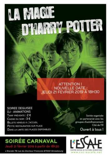 L’Escale, en partenariat avec les groupes d’autofinancement de la Cité de l’Ill, vous propose le jeudi 21 février 2019 à partir de 18h30 une soirée dansante de Carnaval qui se déroulera au 78 rue du Docteur François.